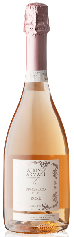 Albino Armani Prosecco Rosé Spumante Extra Dry kommer fra Veneto i Italien. Vinen er skabt på 90 % Glera og 10 % Pinot Noir, hvilket giver både friskhed og kompleksitet. Kombinationen af druerne tilfører struktur og en raffineret karakter til denne mousserende rosé.