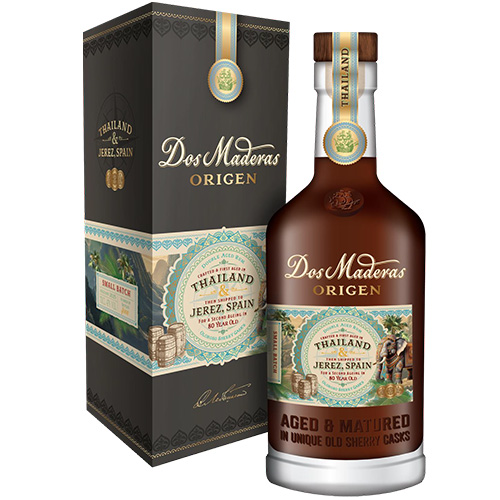 Producent og oprindelse: Dos Maderas Origen Thailand er første udgivelse i Origen-serien – en eksklusiv romserie fra Williams & Humbert i Jerez, Spanien. Rommen er destilleret og lagret i 12 år under tropiske forhold i Thailand, før den sejles til Spanien for yderligere modning i over 80 år gamle Oloroso-sherryfade.